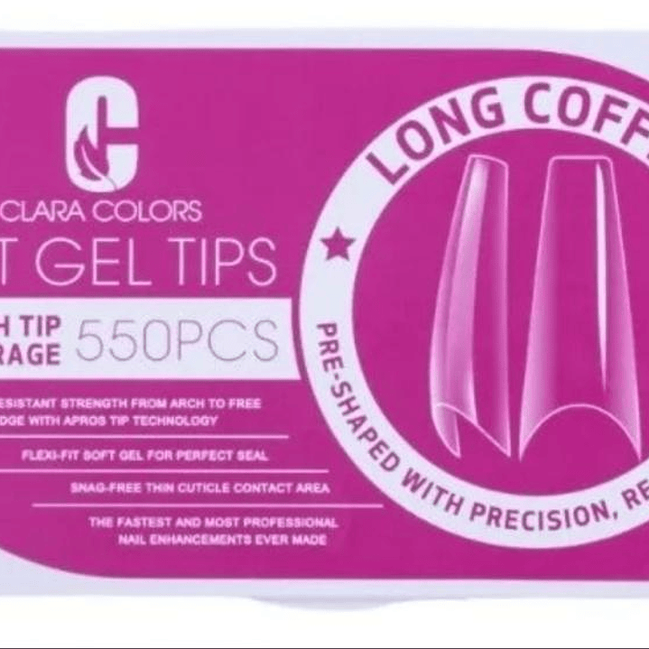 CLARA COLOR TIPS SOFT GEL COFFIN LONG 550 PCS ROSA