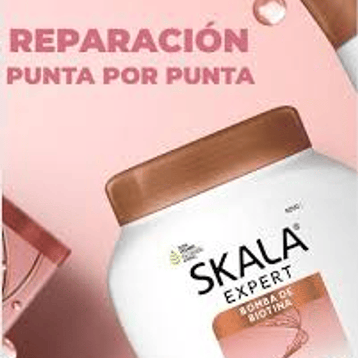 La línea Skala Expert bomba de biotina cuenta con una fórmula exclusiva a través de la tecnología NutriForce, que ayuda en la salud del cabello protegiéndolo contra daños externos y pérdida de agua.